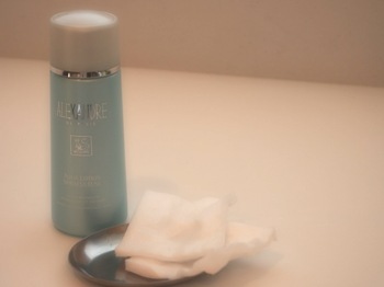 以前紹介した保湿の化粧水(アクアミラキュルーズ)をしみ込ませ、冷やしたコットンを