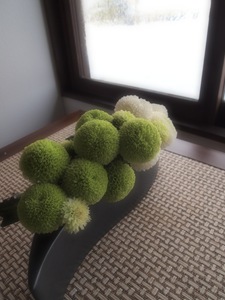 お正月のお花はこんな感じにしてみました。ポンポン菊をメインに・・・。