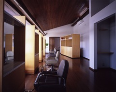 シャンプーブースもテイストを変え、しっとりとしたモダンなブースに。
