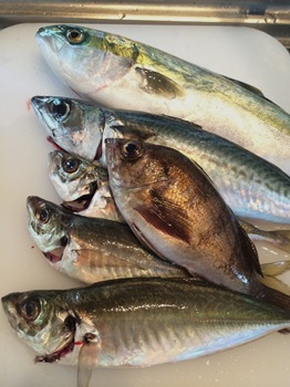 今回は、大アジ(30cm~25cm)を20匹位とサバ(40cm)・メバル(20cm)