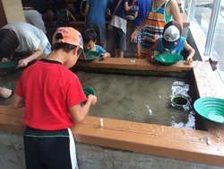 キャンプ場までの道のりが長いので途中、砂金採りに・・・。ベタですが・・・。